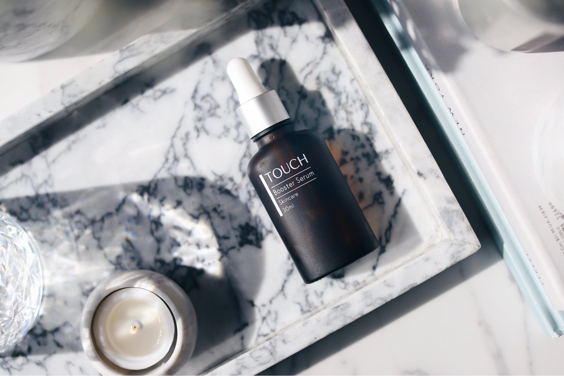 高品質なヒト臍帯由来幹細胞培養液と、5種類のヒト型セラミドを高濃度に配合した原液美容液「TOUCHブースターセラム」は、揺るがない健康な肌の土台づくりをサポートします。