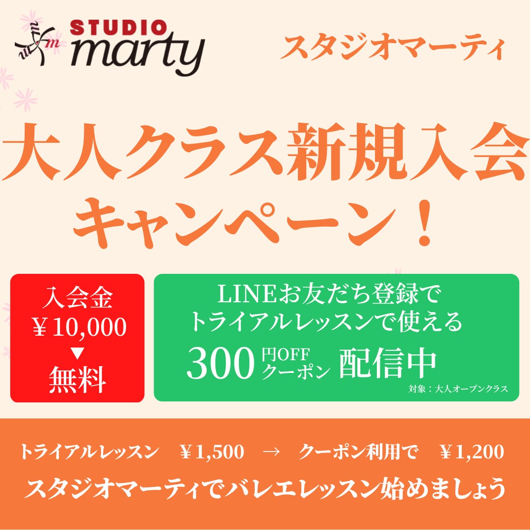 ただいま大人の新規入会キャンペーン実施中!今なら入会金無料!!お試しのトライアルレッスン1回1500円で受付中!さらにLINEのお友達登録でトライアルレッスンで使える300円クーポン配信中!