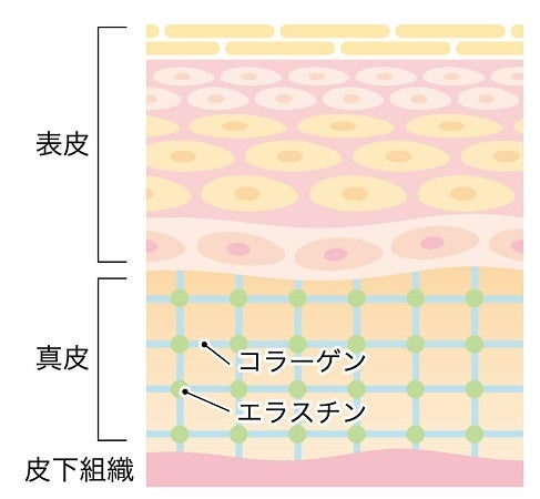 UV-Aが到達する真皮の大部分は肌の弾力を保つコラーゲンやエラスチンというタンパク質繊維が張り巡らされています。