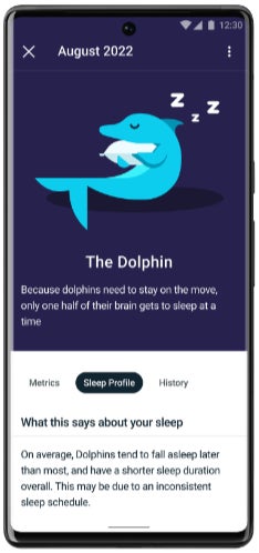 Premiumメンバーになると、自分の睡眠プロフィールが表示されます。このプロフィールには、毎月1日に表示される自分の睡眠状態を表すスリープアニマルと毎月の睡眠分析が含まれます。表示されるスリープアニマルは前月1カ月を通じて収集したデータに基づいて決まるので、睡眠状態に応じて月ごとに変わる場合があります。 「理想的」な動物はありません。それぞれの動物が表す意味を知ることで、睡眠パターンをより深く理解し、睡眠の質を向上させることができます。