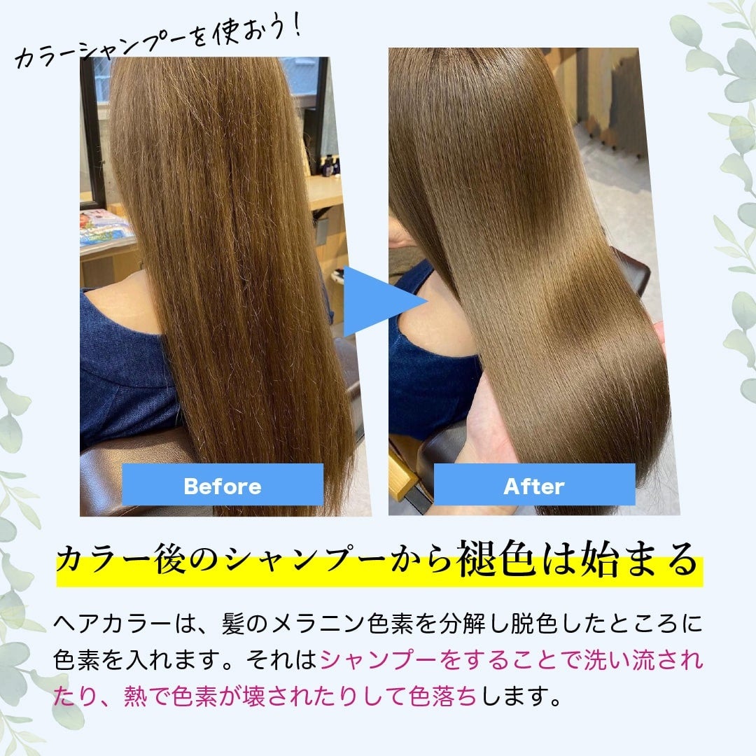 最大の特徴は一般的なカラーシャンプーよりも濃くできており、褪色を抑えブリーチをしている方はもちろん、していない髪の毛への補色も期待できます。