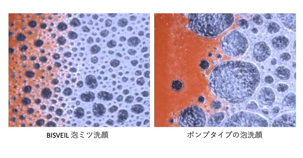 上記の写真はBISVEILの泡ミツ洗顔とポンプタイプの泡洗顔を拡大したものです。
