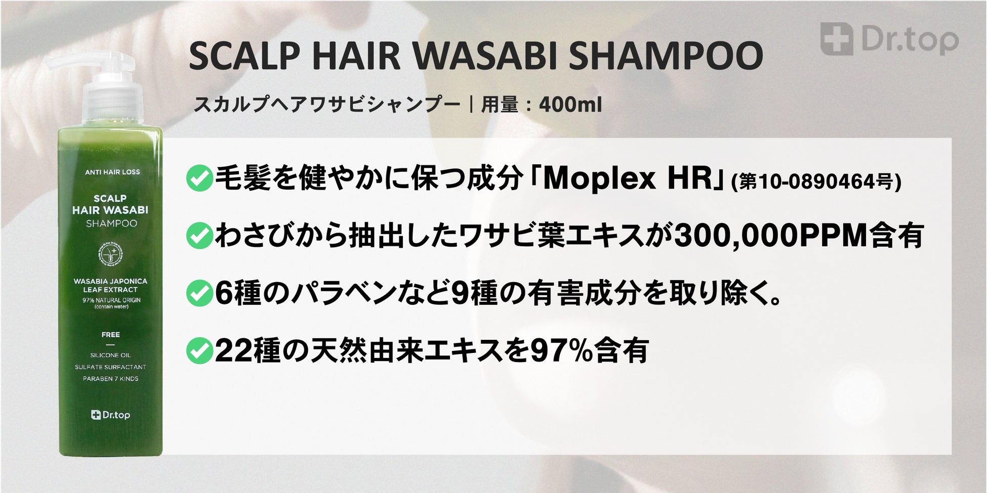 「え!?ワサビで出来たシャンプーなんて頭に使って大丈夫!?」そう思ったあなたに。Dr.topのワサビシャンプーは、新感覚の清涼感を与え、これからの季節にぴったりです。心地良いワサビのメントールの香りと優しい刺激を是非体験してみて下さい。