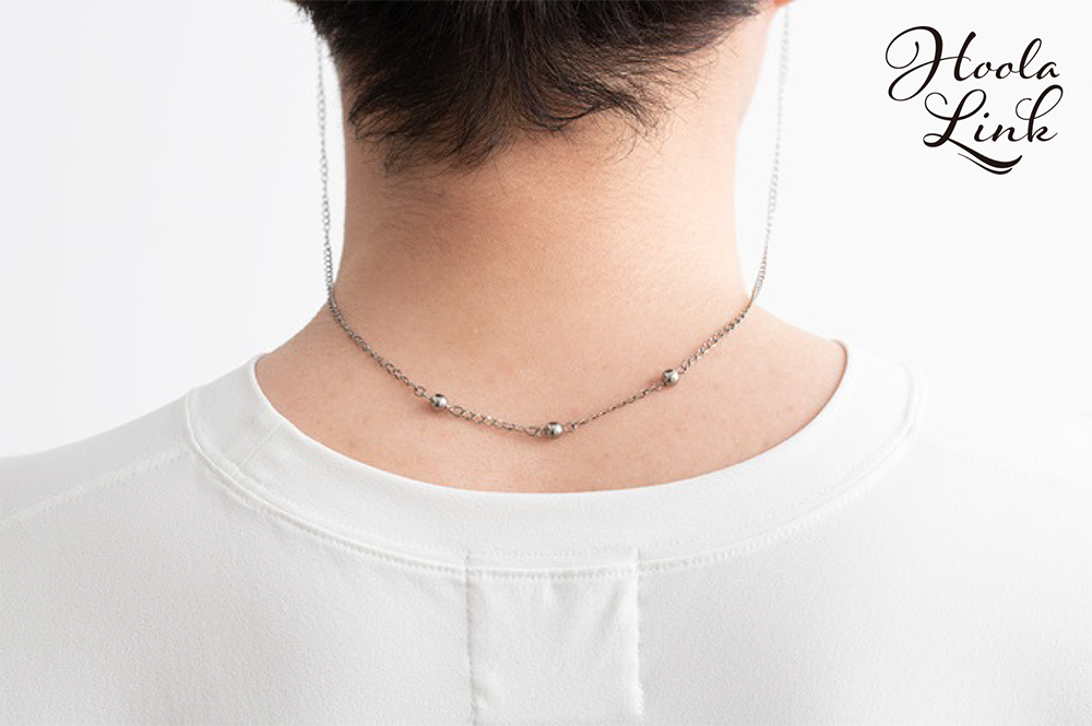 ●純チタン製の極軽マスク&メガネチェーン。純チタンボールが首元を心地よく刺激