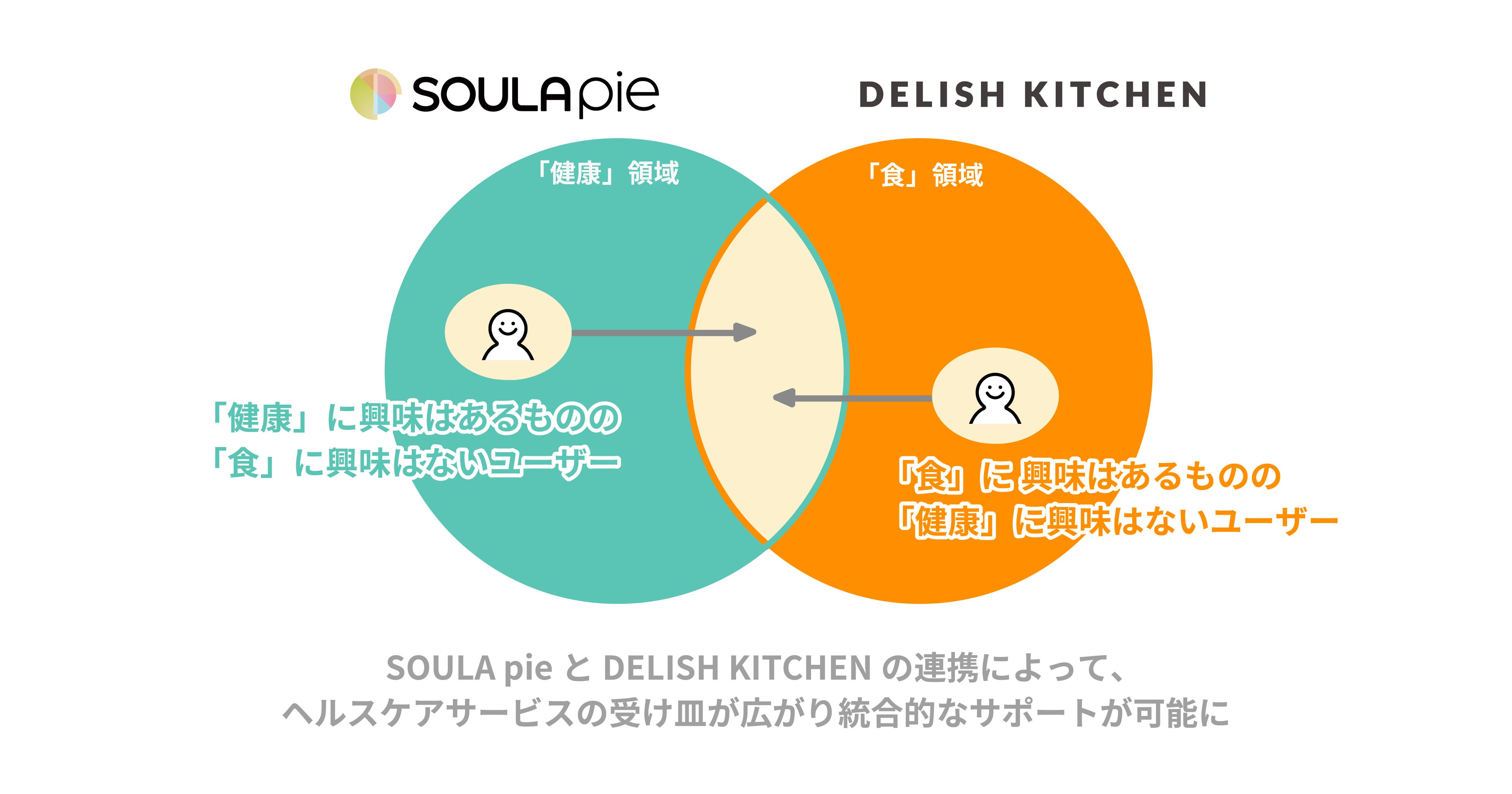 『SOULA pie』と『DELISH KITCHEN』は今回の提携によって、企業や団体のユーザー1人1人にパーソナライズされたヘルスケア(「運動」「食」)の情報をお届けし、健康増進の一助となる仕組みづくりを目指してまいります。