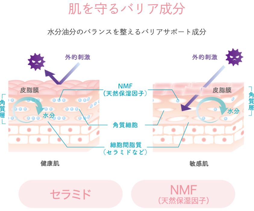 ◆『リペア&バランス』はこれらの悩みを解消するために、ゆらぎ敏感肌をケアする5つの植物成分から成るオリジナル共通成分「リペアコンプレックスRB」や、外部刺激からお肌を守るバリアサポート成分を配合しました。