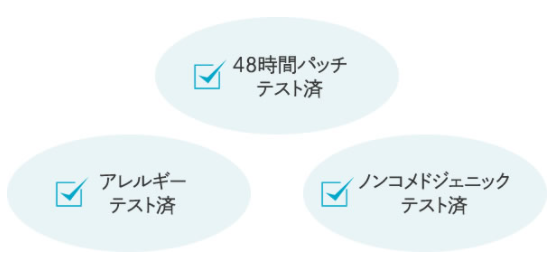 ◆皮膚科専門医監修のもと実施した、アレルギーテスト(※2)、ノンコメドジェニックテスト(※3)、48時間パッチテストをクリアし、パラベン、アルコール、合成香料、合成着色料、紫外線吸収剤を使用していない、ゆらぎ敏感肌にも安心な処方です。