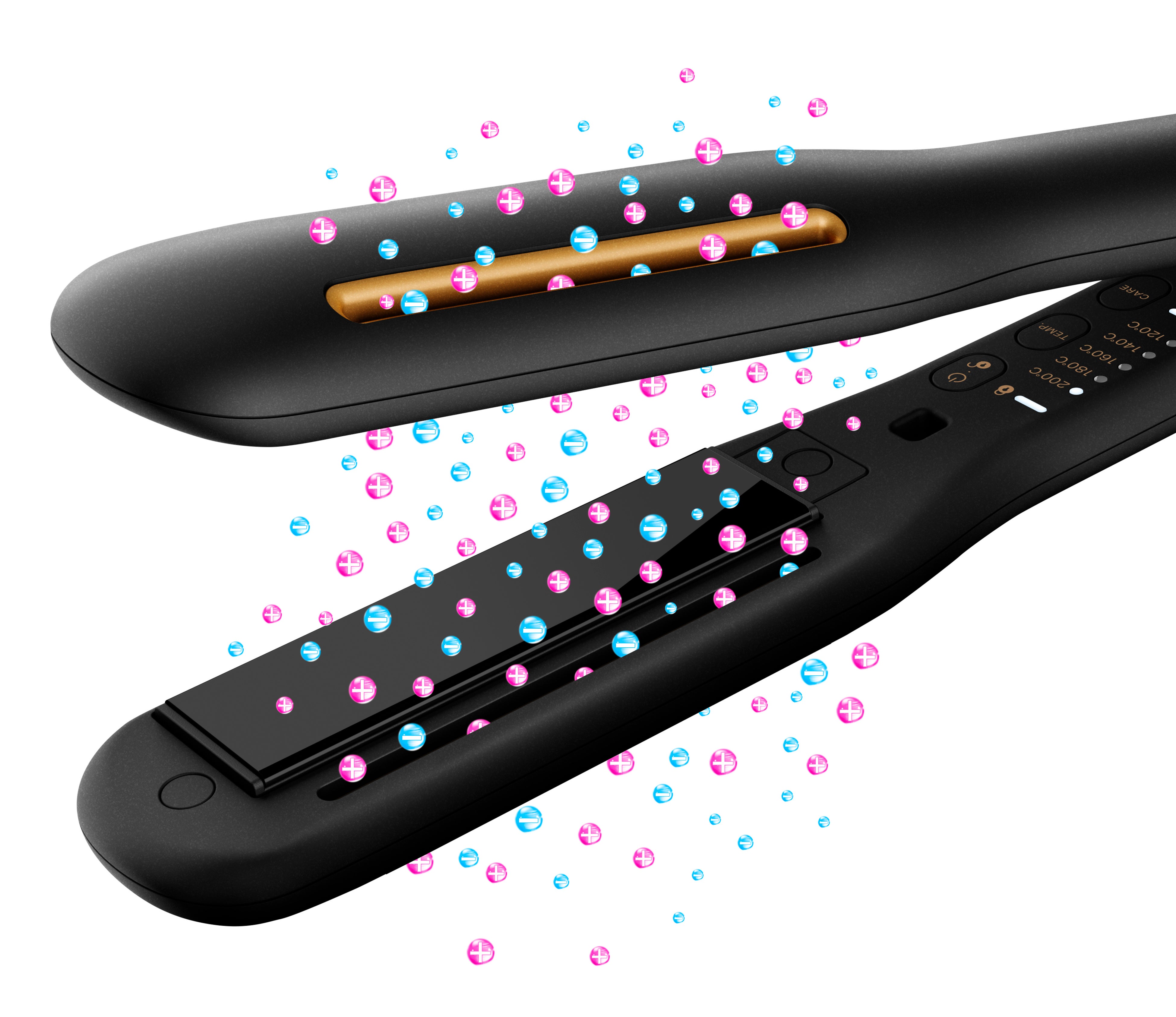 4か所から放出されるプラスマイナスイオンにより静電気を低減することで、髪のなめらかさが約45倍に。(*2)