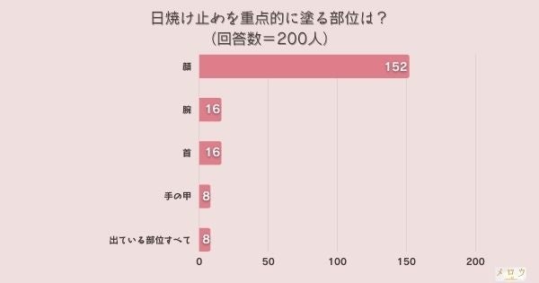 「日焼け止めを重点的に塗る部位は?」とアンケート調査した結果、1位は『顔』でした。
