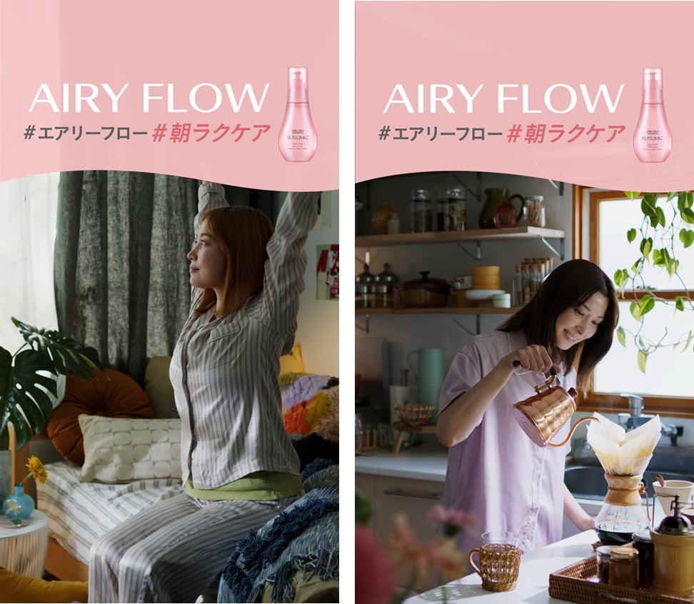 エアリーフローはヘアアイロンやドライヤーの熱を味方にする新テクノロジーを搭載し、くせやうねりのある髪の形状を内側から整え、扱いやすい髪へと導きます。このシリーズには、ふんわりとまとまる「UNRULY HAIR」と、ボリュームを抑えながら軽やかに仕上がる「THICK, UNRULY HAIR」の2ラインがあり、髪質や理想のヘアスタイルによって選べるのが特長です。
