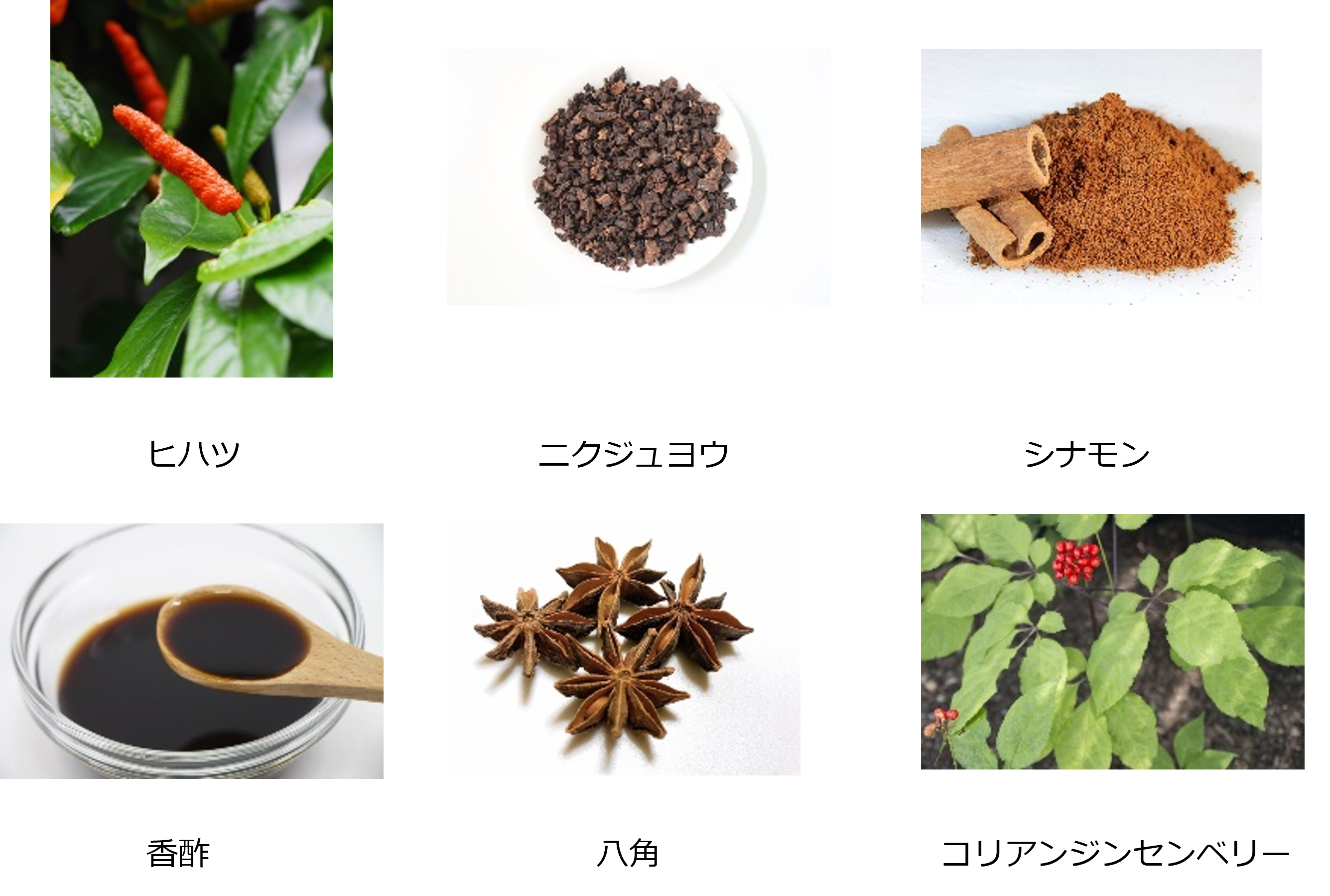 ヒハツエキス末(デキストリン、ヒハツエキス)(国内製造)ニクジュヨウエキス末(ニクジュヨウ抽出物、デキストリン)、シナモン末、スターアニス末、米酢粉末(米酢、デキストリン)、高麗人参果実エキス末(マルトデキストリン、高麗人参果実エキス)/ゼラチン、結晶セルロース、ステアリン酸カルシウム、二酸化ケイ素