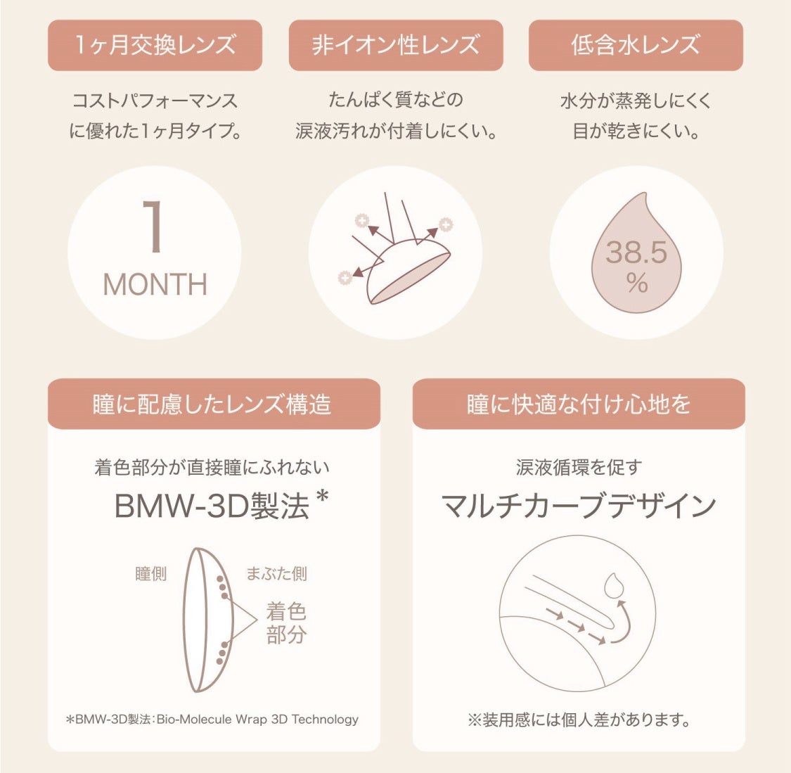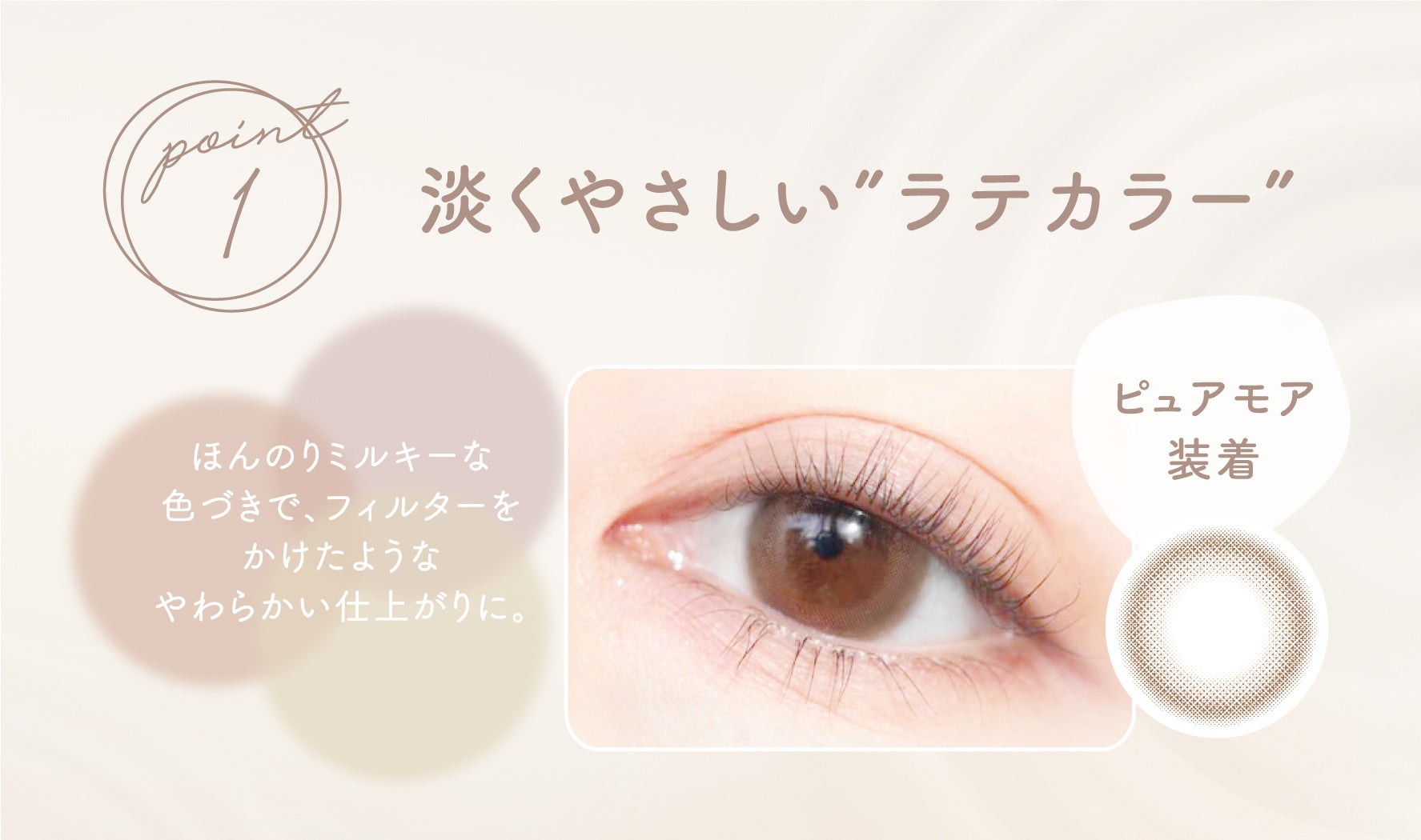 従来より繊細なドットをフチに仕込むことで、とろけるようなフチ感。黒目さんも茶目さんもだれでも似合うデザインです。