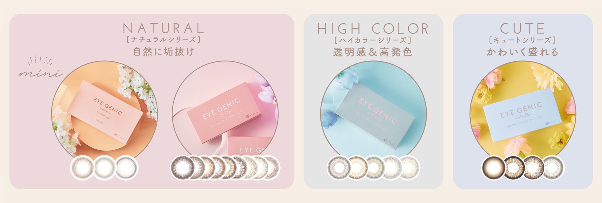 アイジェニックは、女の子のこんな風になりたい!を叶えるブランドです。「映し出す、『私』の魅力。」をコンセプトに、全21色の幅広いデザイン・カラーで幅広い年代のお客様に愛されているブランドです。瞳からフォトジェニックになれるような、トレンドのデザインを届け続けてまいります。