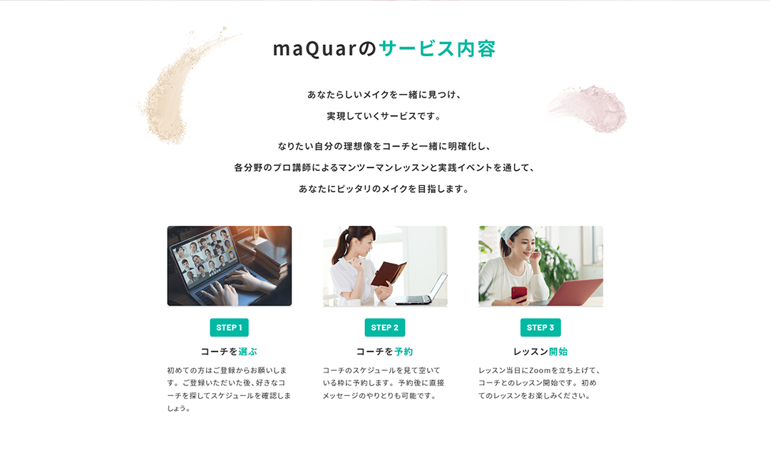 オンラインメイクレッスン、「maQuar」はそんなサービスです。