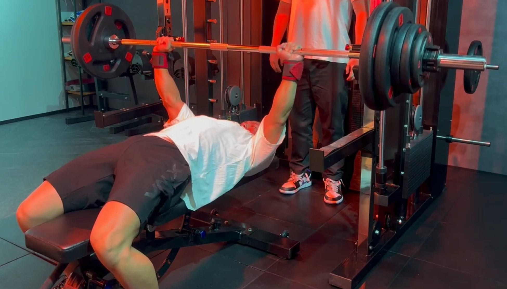 体重の1.5倍の重量のベンチプレスを上げている動画を投稿