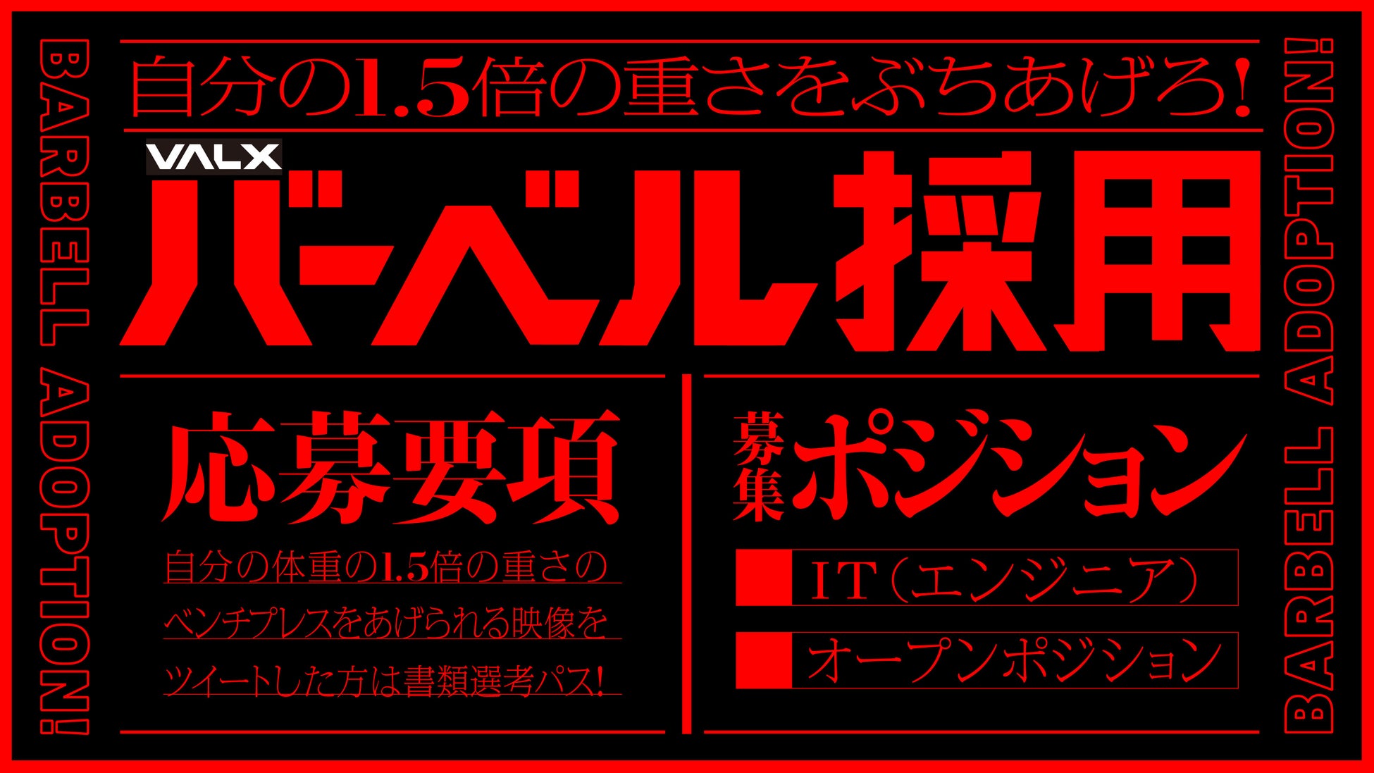 フィットネスブランド「VALX(バルクス)」を展開する株式会社レバレッジ(本社:東京都渋谷区、代表取締役:只石昌幸)は、2022年6月27日(月)より新たな採用の取り組みとしてバーベル採用が始動したことをお知らせいたします。