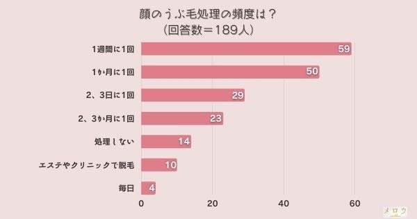 「顔のうぶ毛処理の頻度は?」とアンケート調査した結果、1位は『1週間に1回』でした。