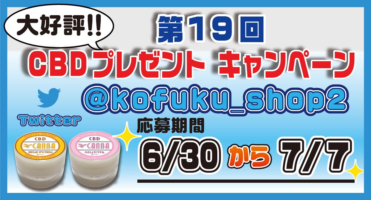 宏福商事(東京都荒川区)は今話題の産業用ヘンプである大麻草の成熟した茎や種のみから抽出・製造されたTHCフリーのカンナビジオール(CBD)を海外の厳選した工場から正規輸入販売しています。第19回CBDプレゼントキャンペーンを開催致します。ご応募はTwitterからのみとさせて頂きます。