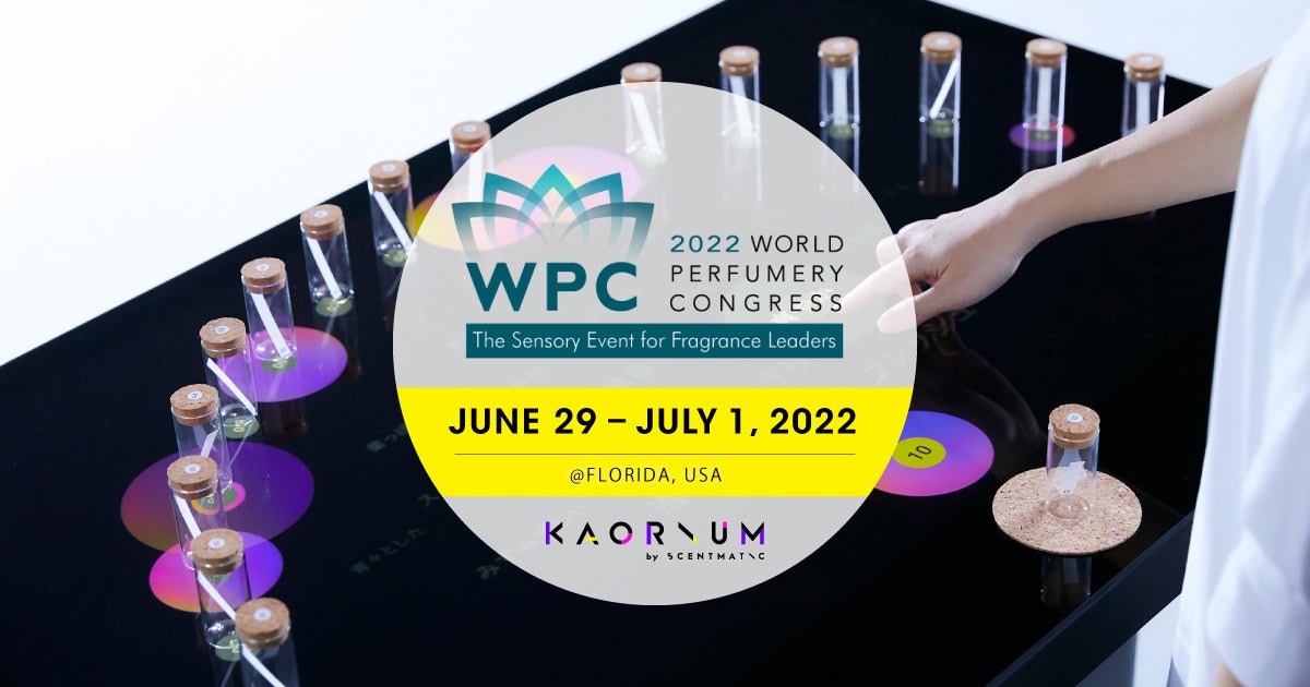 嗅覚のデジタライゼーションによって新たな顧客体験を提案するSCENTMATIC 株式会社(代表取締役:栗栖俊治、本社:東京都、以下「セントマティック」)は、2022年6月29日から7月1日 の3日間、アメリカ合衆国・フロリダ州マイアミで開催される「2022 World Perfumery Congress(世界香水会議、以下 WPC)」に、同社の開発する香りの言語化AI「KAORIUM(カオリウム)」を出展いたします。