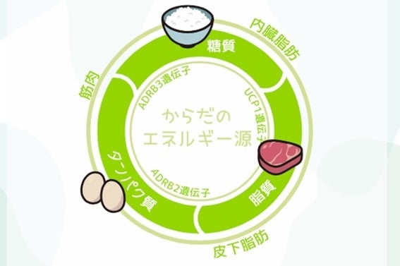 肥満に関する3種類の遺伝子(たんぱく質、糖質、脂質での太りやすさに関する遺伝子)を分析し、自分の遺伝体質を知ることで無理のないダイエット方法がわかります。