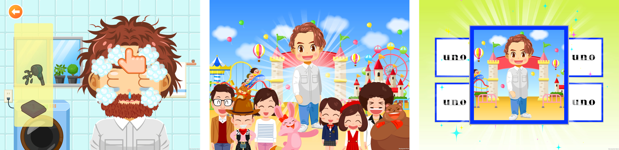 朝目覚めてから、お出かけするまでの身じたくを楽しく体験できるゲームです。3人のキャラクターから選択でき、洗顔、ひげそり、スキンケア、ヘアスタイリングなどを行い、身なりを整えます。アイテムを使用して顔を洗ったり、髭を整えたり、複数のヘアスタイルや眉毛の形の中から自分が好きなものを選ぶことができます。身なりが整ったら、お出かけし、写真撮影をします。撮影した写真は「おしゃれずかん」に保存されます(保存枚数は最大8枚)。