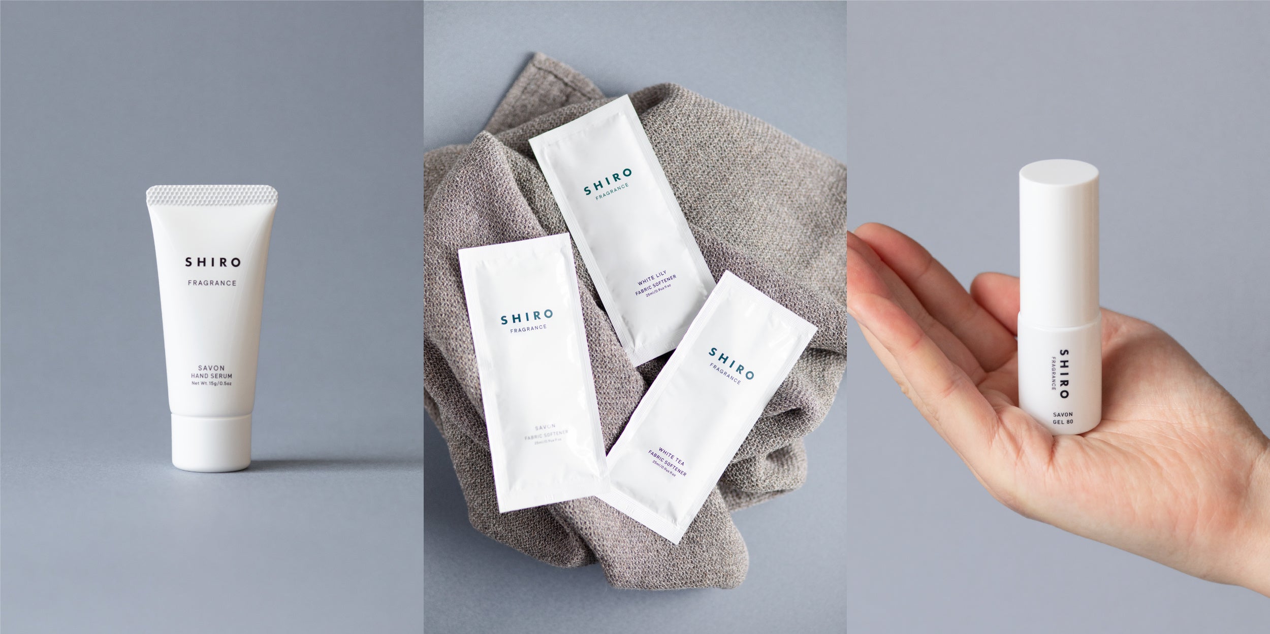 植物由来の柔軟成分で素肌に触れる衣服やリネンなどをふんわりと仕上げて吸水性をキープします。サボン、ホワイトリリー、ホワイトティーの3 種の香りです。