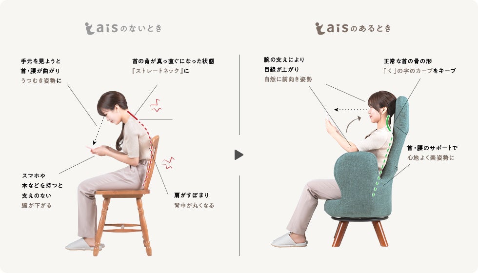 うつむかないチェアaisなら、その悪い時間を減らせます。