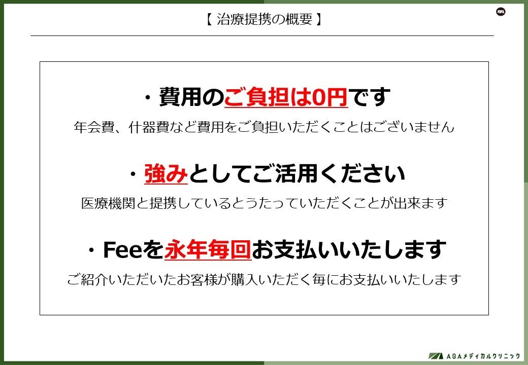 大阪府豊中市の千里中央にクリニックを構えて薄毛治療を行っているAGAメディカルクリニックが、法人との治療提携を開始。