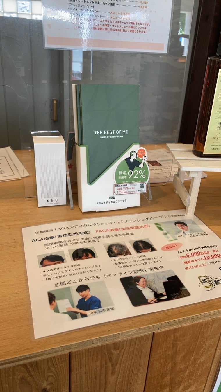 実際に提携している理美容院(愛知県春日井市小牧市の某美容室)での販促物展示状況(写真1,2)。