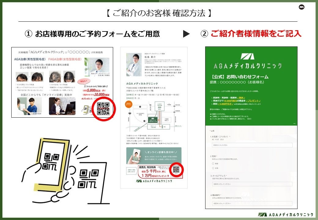 提携先からの紹介であることを確認する方法として、提携先専用のQRコードとお問合せフォームを用意し、そこからお問合せをいただいた方は提携先からのお問合せであると判断する(図4)。