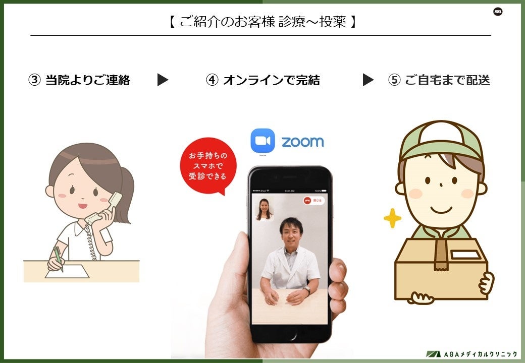 提携を結んだ法人からご相談やご紹介をいただいた法人の顧客に対して、オンライン診療を活用した薄毛治療を実施します。