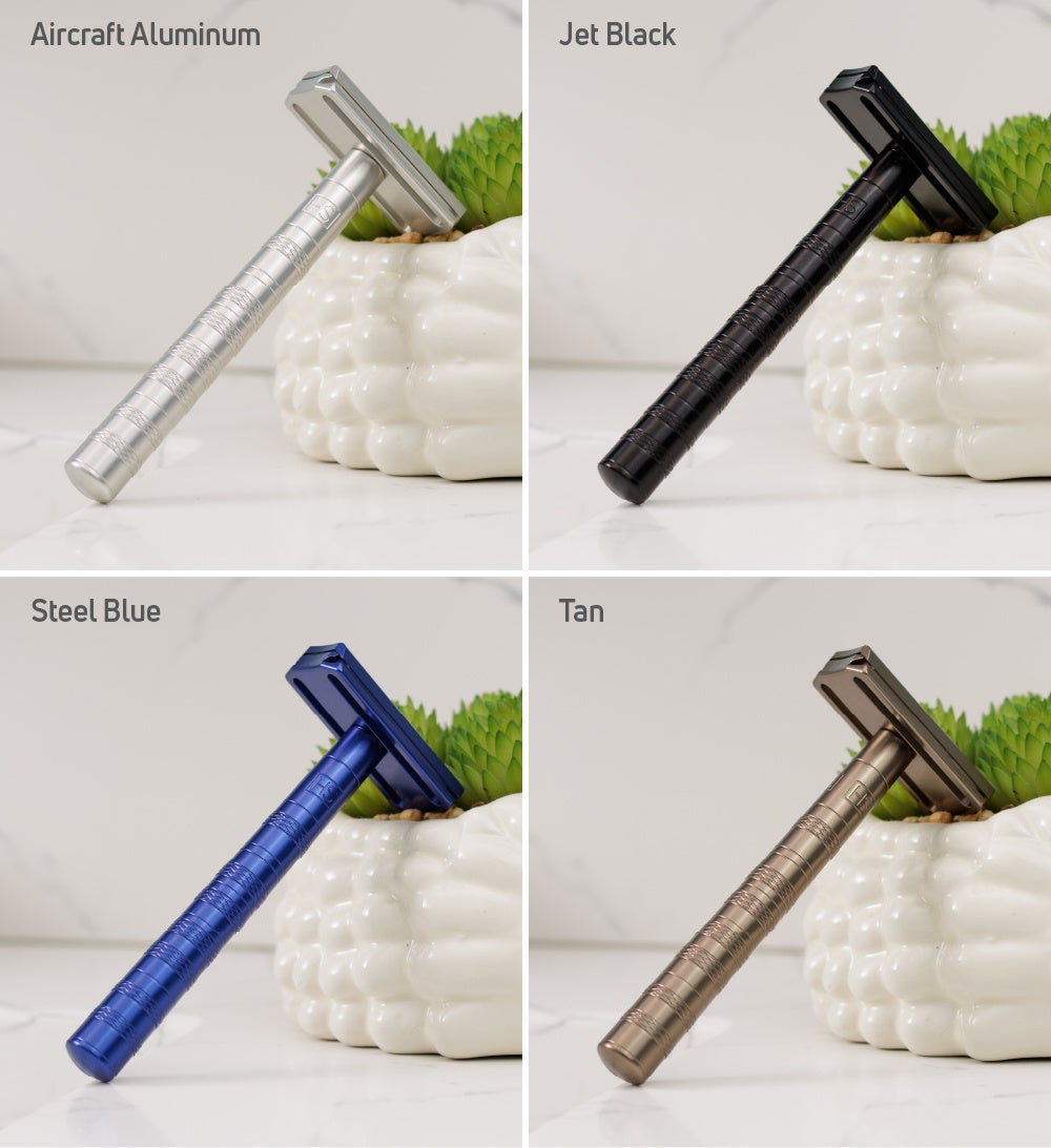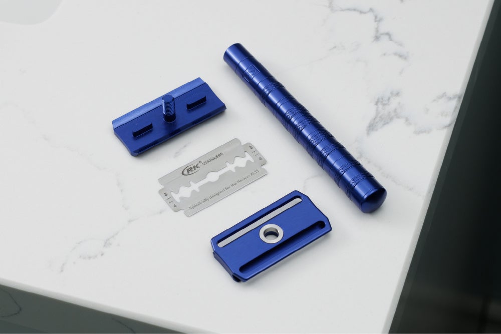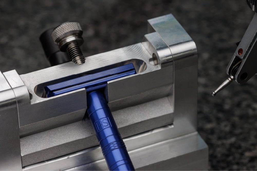 HENSON SHAVINGは最適な剃り心地を保つために、人工衛星の製造に必要なAS9100航空宇宙規格を持った工場で、余分な厚みが出るクロームメッキや塗装をせずに、精密に機械加工されています。そのため、刃の角度と露出は0.005mmという公差で製造されています。