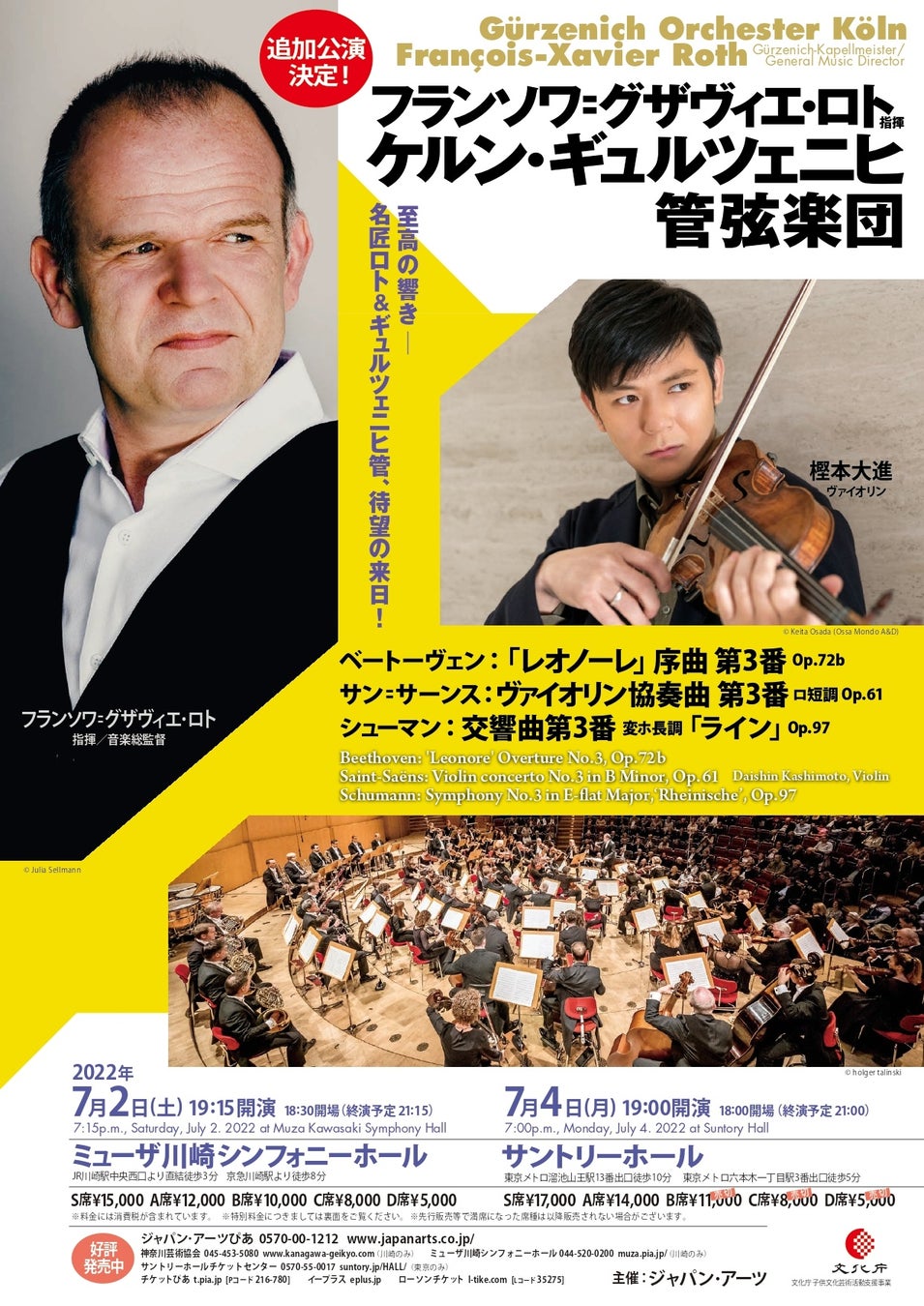 ケルン・ギュルツェニヒ管弦楽団は1827年に設立され、ドイツのケルンを拠点としたオーケストラです。2015年より、フランソワ=グザヴィエ・ロト氏が首席指揮者を務めています。今回の公演が初の日本公演となります。