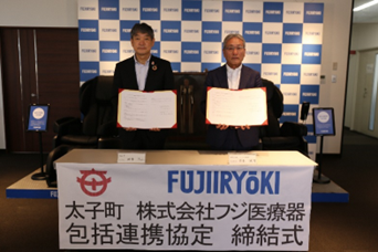 太子町と、美と健康の総合メーカー、株式会社フジ医療器は、令和4年5月26日に「健康づくりの推進に関すること」、「地域環境の保全・向上に関すること」、「地方創生に関すること」などの5分野にわたる連携と協働に関する包括連携協定を締結。令和3年度より、太子町のふるさと納税返礼品として、フジ医療器の製品を11品目出品(令和4年6月30日現在)。