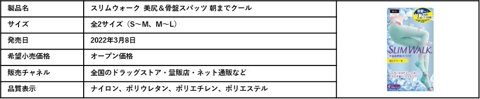 雨などで湿度の高い日は体から水分が蒸発しにくくなり、水分代謝が滞ることで重ダル脚になりやすいとされています。夏は多湿に加え、冷たい飲み物による体の冷えなどからも「重ダル脚」になりやすいため、「マッサージ」や「ストレッチ」等、自分に合ったケア方法を知っておくことが大切です。じめじめ暑くなるこれからの時期、着圧アイテムを使ったケアについては、ひんやり冷感が感じられるクールタイプの製品の使用がおすすめです。スリムウォークの朝までクールシリーズは、-4℃の冷感が12時間※持続する冷感設計で、暑い日も翌朝まで快適に「重ダル脚」をケアしていただけます。
