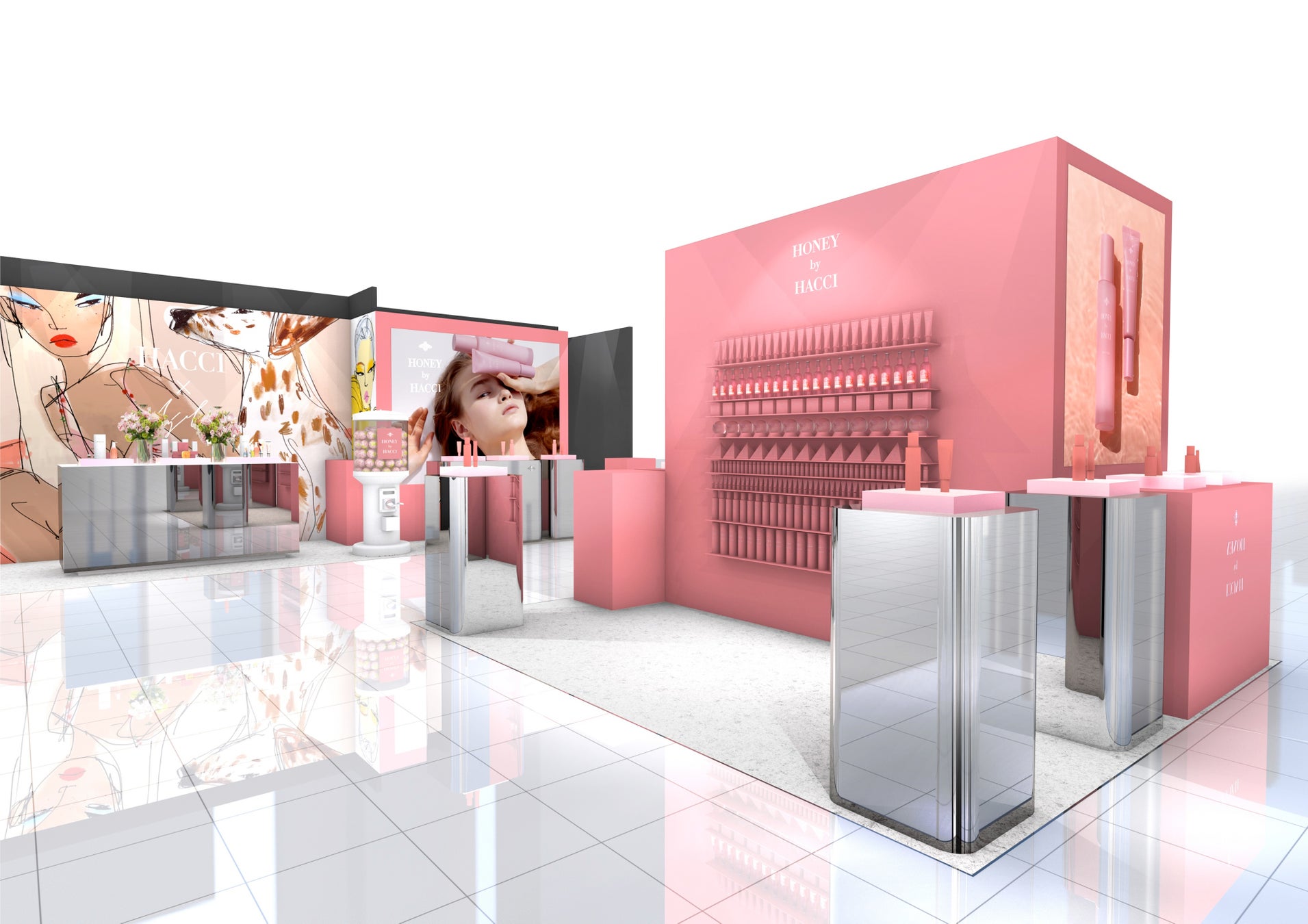 新スキンケアライン「HONEY BY HACCI」のハニーピンクの世界観をたっぷり楽しめるフォトジェニックな空間に、同シリーズで使用するブルガリアンローズを贅沢に配合した洗顔パウダー「スキップウォッシュ」と「ハニー ローズ フィナンシェ」が限定登場いたします。また、POP UPでしか手に入らないスペシャルキットや、ベストセラー「ハニーコラーゲン 9本セット」、「はちみつ洗顔石けん」のハニーピンク限定パッケージもご用意しております。会期中に、HACCI商品が当たるお楽しみガチャもご参加いただけます。