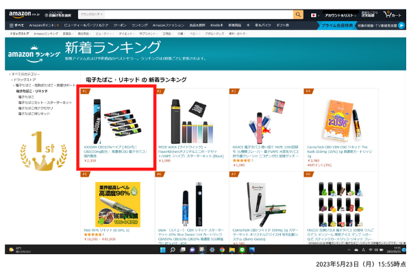当社は、OEMメーカーとして200点以上のCBD商品の開発実績とユーザーインタビューを元に、2022年5月23日(月)に『JOODAN CBD23%べイプ』をAmazonにて販売開始。発売初日からAmazonランキング1位を獲得いたしました。