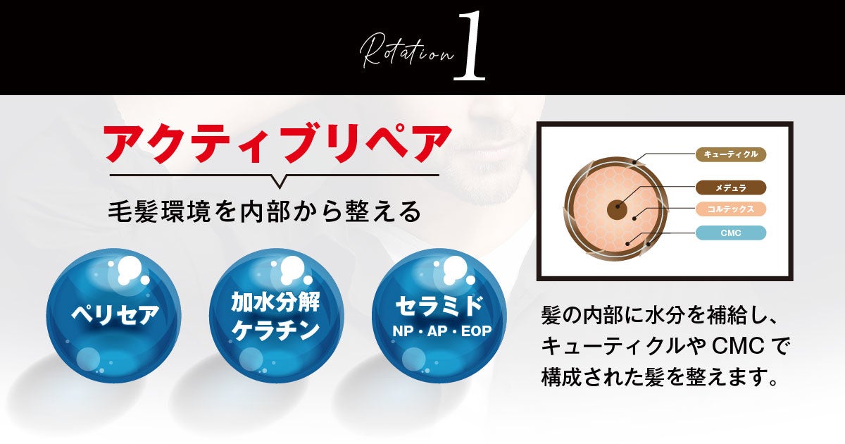 1. アクティブリペア:毛髪を内部から整え、乾燥しにくい髪に。