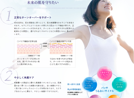 ■WASSER(バッサ)高濃度水素イオン水ジェル美容液で長乾燥肌もしっかり保湿