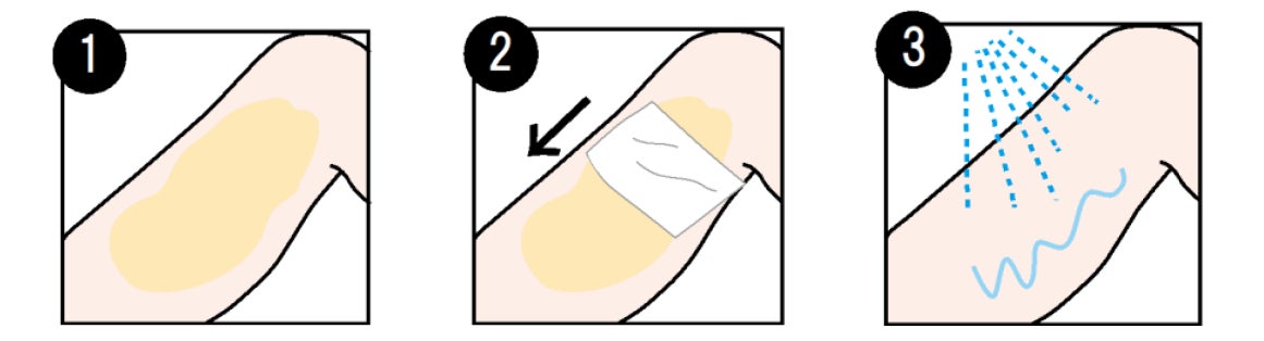 ③リムーバーが肌の上に残らないように、シャワーなどでよく洗い流してください。