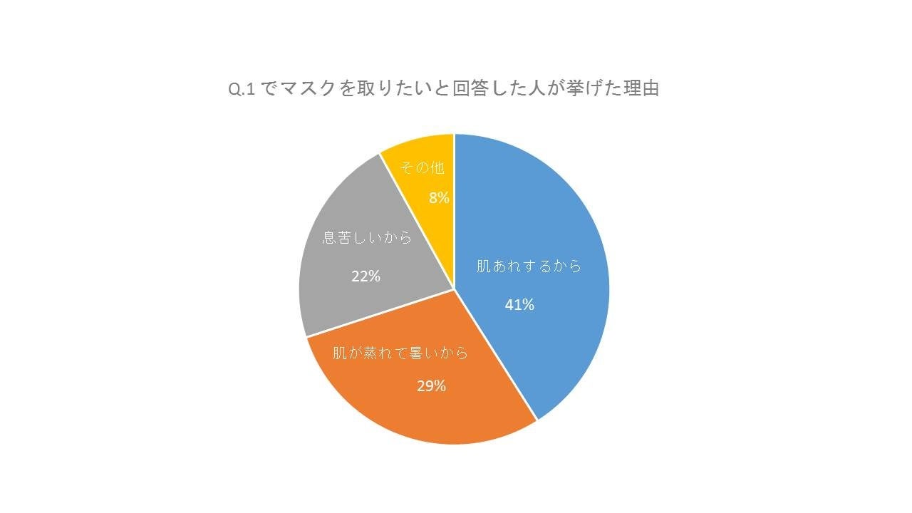 マスクを取りたいと回答した人の内、「マスクによる肌あれが嫌だから」という理由を挙げた人は41%と最も多い結果となりました。