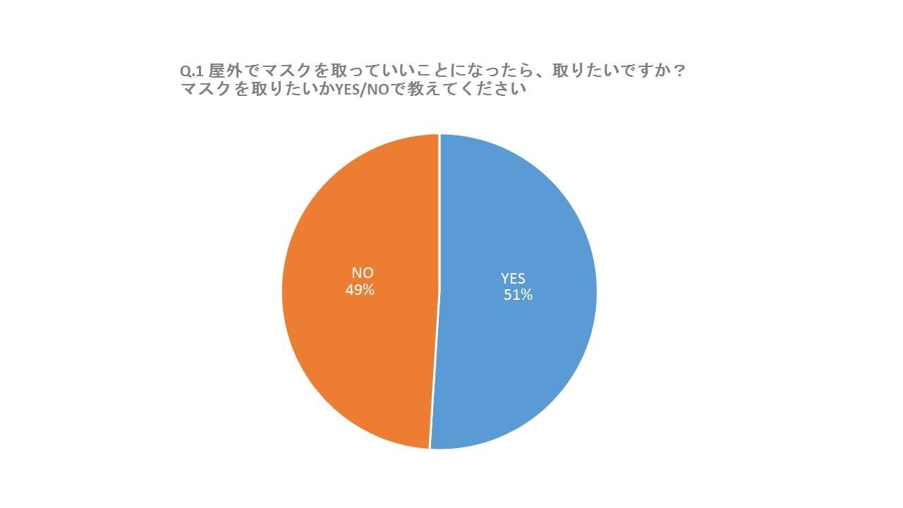 アンケート調査から、屋外でマスクを外せる状況になったらマスクを外したい人と着用を続けたい人の割合はほぼ半々となりました。