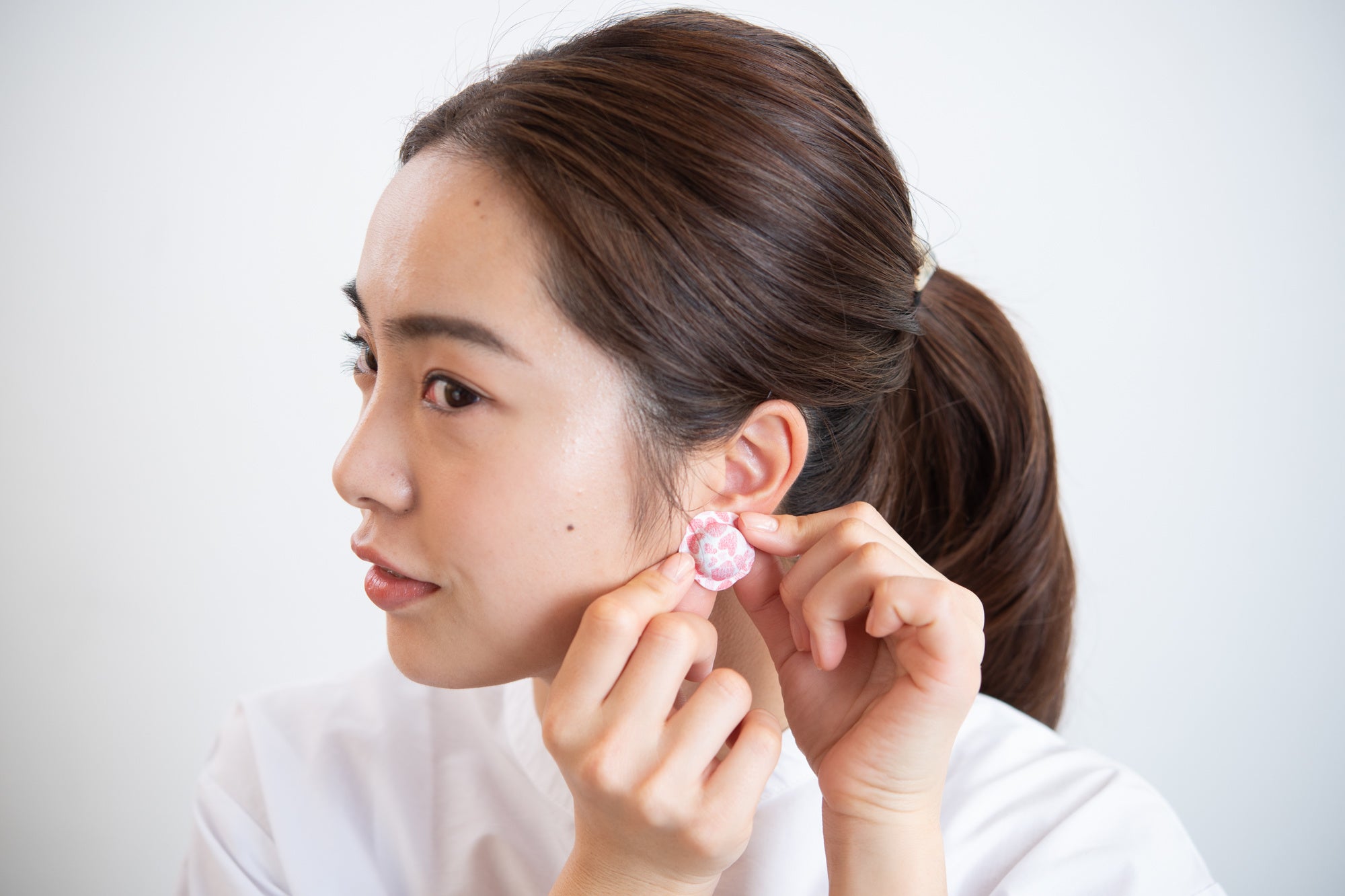 二日酔いの朝、たまたま耳たぶに試作品を貼ってみたところ、顔や首筋まで急速に温まり、一気に頭が冴えた驚きが開発のきっかけです。(開発者個人の感想です。)耳たぶには毛細血管が
