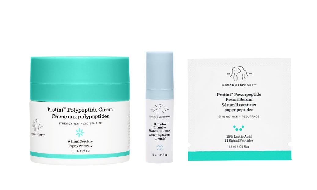 お肌の水分&油分バランスを保ちながら、夏のお疲れ感を感じさせない、なめらかぷるんと弾むような肌に導くためにおすすめなのが、プロティニシリーズ。ドランク エレファントの「プロティニ ポリペプチド クリーム」と「プロティニ P ペプチド リサーフセラム」には、複数種のペプチドを配合し、朝晩のケアに取り入れることで、ふっくらなめらか、ぷるんとしたハリのある肌へ導きます。単品使いで毎日のお手入れにクリーム・セラムとして取り入れて頂いても効果を実感頂けますが、ドランク エレファントの魅力をさらに体験頂くには、#手のひらスムージー 使いがおすすめ。