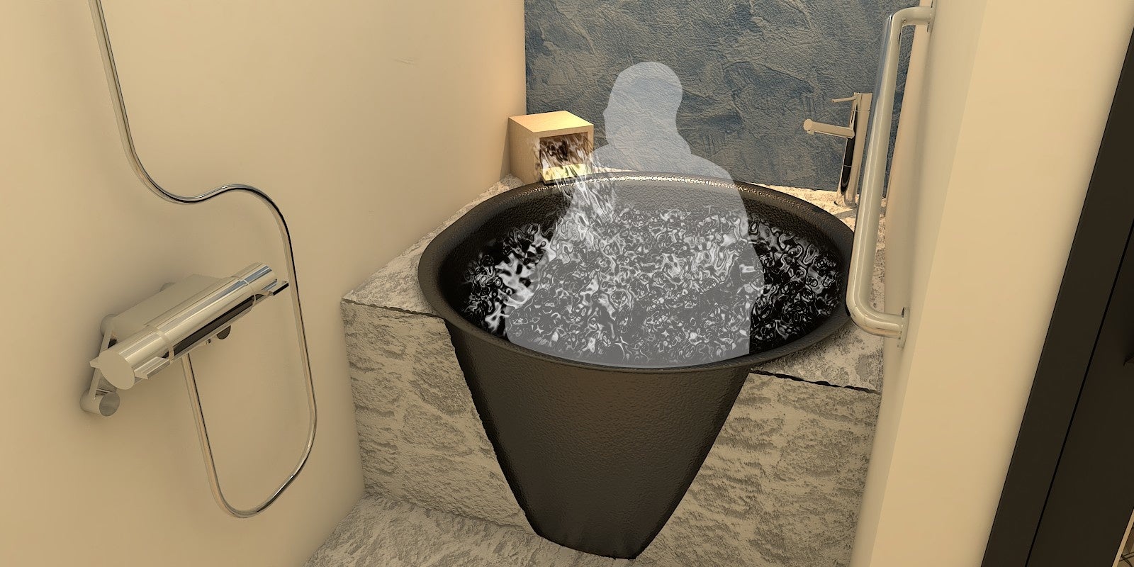 冷がやわらかく伝わり、まろやかな水加減が肌にやさしい、日本国内で唯一の鋳物[いもの]の風呂釜。 チラー温度は、冷た過ぎず、身体に優しい自然温度をテーマに提供致します。