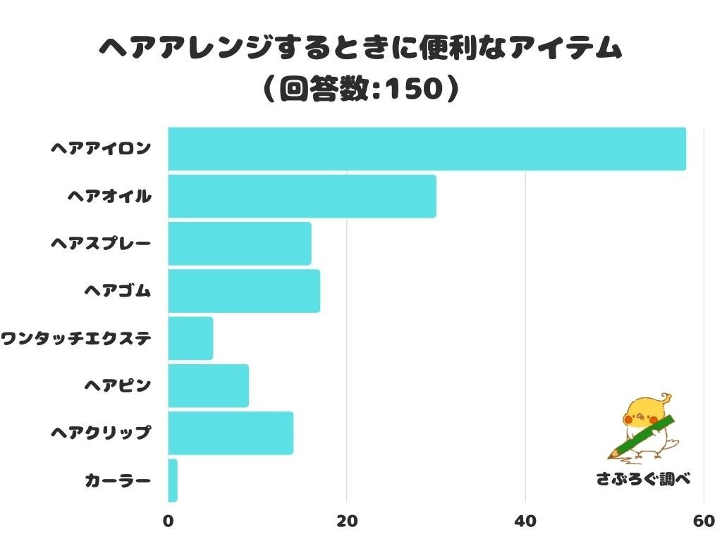 ヘアアレンジするときに便利なアイテムをアンケートにて調査したところ、1位は「ヘアアイロン」でした。