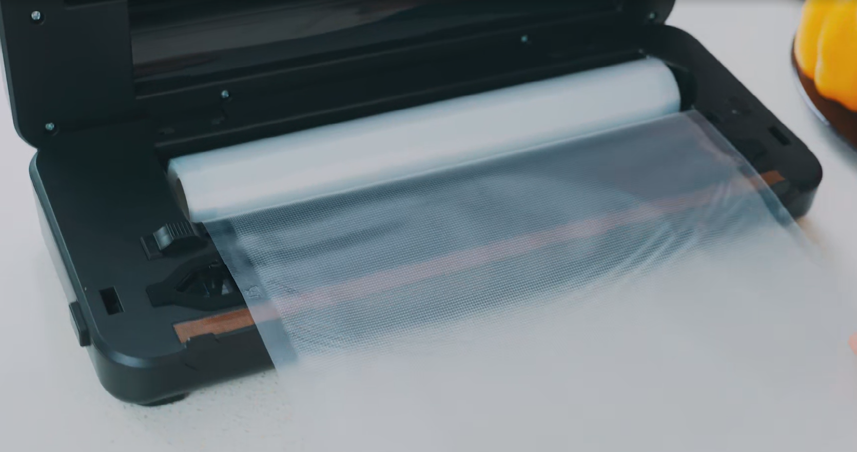 Yummyvacは実用性と高性能を両立した真空パック機です。80kPaと強い吸引力、しかし専用袋不要で、食材を選ばず、何でも真空パック!ロールとカッターを本体内に内蔵し、ロールを必要な長さだけ引き出して、最短2秒でお好きなサイズの真空パックが作れます。