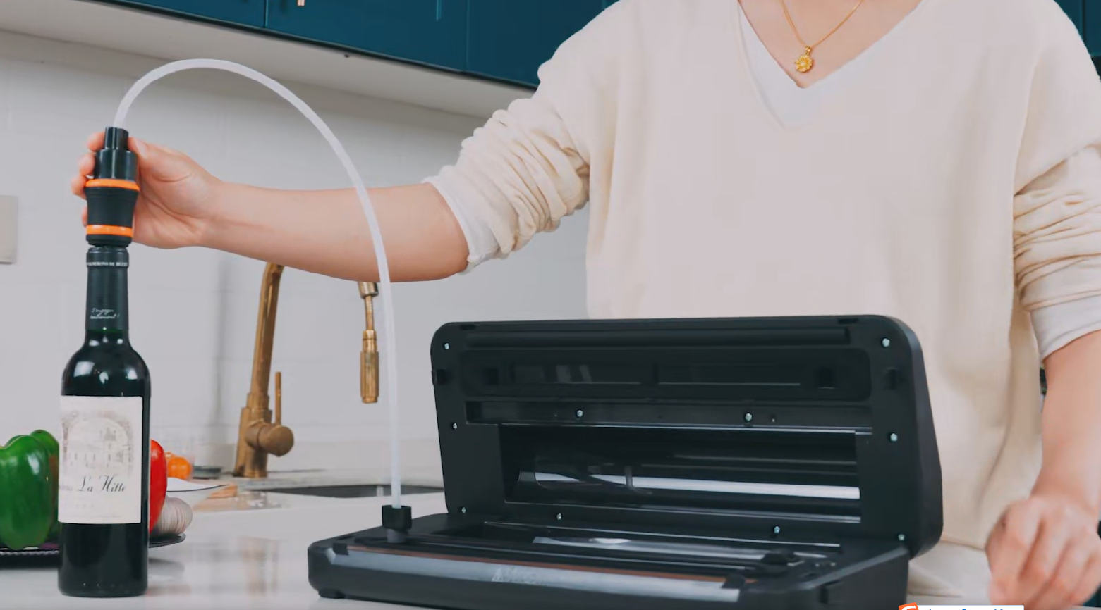 ①「強い吸引力・専用袋不要」驚きの80kpaで卵から、液体、粉末、アルミ缶まで、何でもサッと真空パック!