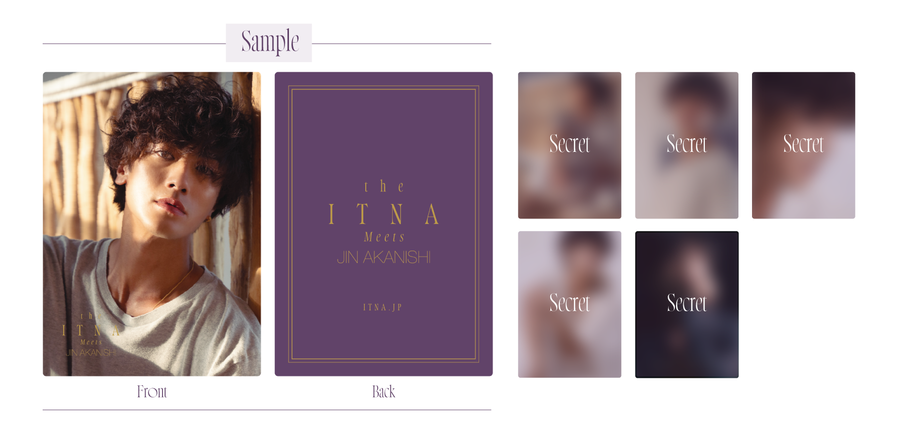 今回のクロガリンガルを使用した究極のアンチエイジングサプリブランド『the ITNA』の為だけに撮り下ろされた未公開ショットを含む全6種類のオリジナルカード。