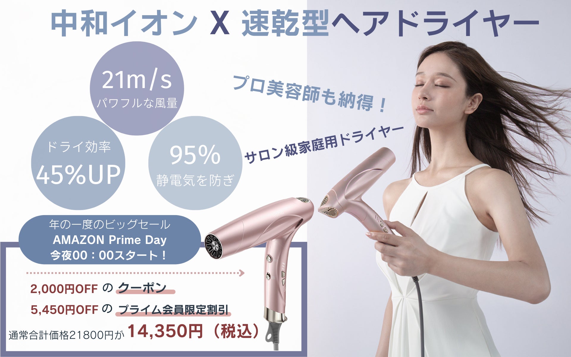 中和イオンはプラスイオンとマイナスイオンが同時に放出する状態の総称です。 プラスとマイナスイオンが同時に髪に付着し、髪週りのイオンがバランスのとれた状態になり、数千万の中和イオンを放出で静電気を95%抑え、髪のキューティクルダメージを抑制し、髪の奥までうるおく、本来のツヤを守ります。髪の毛の根元に深く入り込み、効果的に殺菌し、頭皮の健康を高め、髪の切れを減らすことができます。